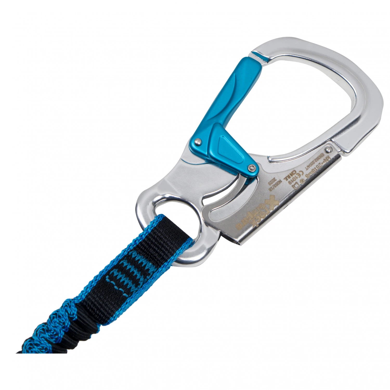 Il s’agit d’une part du petit émerillon (l’articulation) située à l’interface entre l’absorbeur d’énergie et les deux brins de sécurité élastiques. Ça permet d’éviter une torsion gênante des deux brins. D’autre part, la longe marque des points grâce à une boucle de repos fixée à ce même émerillon, qui permet par exemple de se sécuriser à l’aide d’un anneau de sangle et d’un mousqueton à vis supplémentaire avant ou après des passages éprouvants dans la montée, afin de se reposer. C’est tout aussi pratique que confortable. Le reste de la longe rempli tous les standards établis : deux mousquetons de via ferrata avec déverrouillage par la paume pour la progression ainsi qu’un absorbeur d’énergie cousue certifié selon la norme EN 958 complètent l’ensemble. Les fans de via ferrata disposent ainsi d’une longe parfaitement réussie qui convient pour les parcours les plus variables.